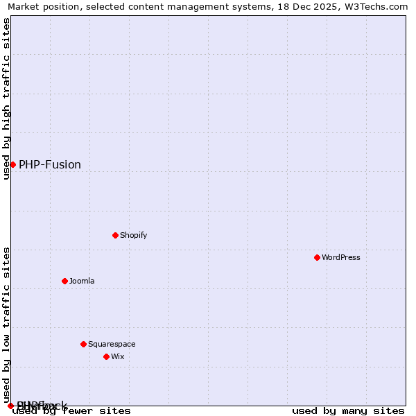 Historical trendThis diagram shows the historical trend in the percentage of websites using the selected technologies. Market positionThis diagram shows the market position of the selected technologies in terms of popularity and traffic compared to the most popular content management systems. More detailed statisticsYou can find extensive reports of content management systems in our content management systems market reports. Share this page | |||||||||||||||||||||||||||||||||||||||||||||||||||||||||||||||||||||||||||||||||||||||