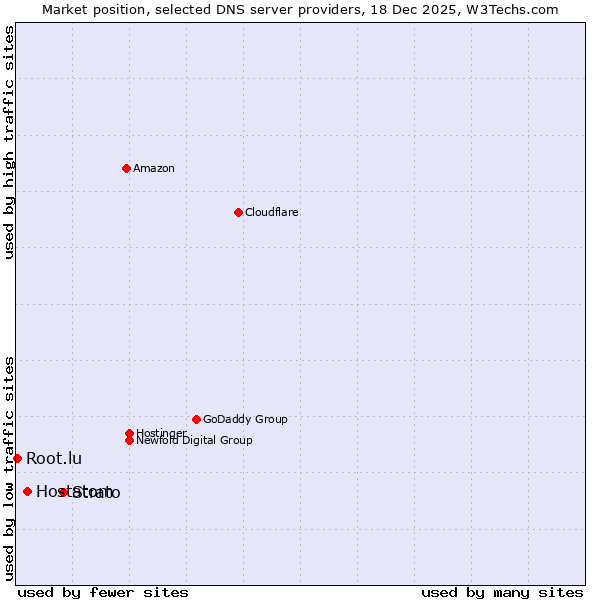 TechnologiesContent ManagementServer-side Languages Client-side Languages JavaScript Libraries CSS Frameworks Web Servers Web Panels Operating Systems Web Hosting Data Centers Reverse Proxies DNS Servers Email Servers SSL Certificate Authorities Content Delivery Traffic Analysis Tools Advertising Networks Tag Managers Social Widgets Site Elements Structured Data Markup Languages Character Encodings Image File Formats Top Level Domains Server Locations Content Languages | Technologies > DNS Servers > Technology usage comparison Comparison of the usage statistics of Strato vs. Hostatom vs. Root.lu for websitesThis report shows the usage statistics of Strato vs. Hostatom vs. Root.lu as DNS server provider on the web. See technologies overview for explanations on the methodologies used in the surveys. Our reports are updated daily. UsageThis diagram shows the percentages of websites using the selected technologies. How to read the diagram: