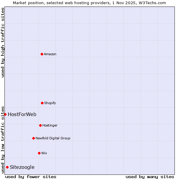 TechnologiesContent ManagementServer-side Languages Client-side Languages JavaScript Libraries CSS Frameworks Web Servers Web Panels Operating Systems Web Hosting Data Centers Reverse Proxies DNS Servers Email Servers SSL Certificate Authorities Content Delivery Traffic Analysis Tools Advertising Networks Tag Managers Social Widgets Site Elements Structured Data Markup Languages Character Encodings Image File Formats Top Level Domains Server Locations Content Languages ComparisonCompare with other | Technologies > Web Hosting > Technology usage comparison Comparison of the usage statistics of Sitezoogle vs. HostForWeb for websitesThis report shows the usage statistics of Sitezoogle vs. HostForWeb as web hosting provider on the web. See technologies overview for explanations on the methodologies used in the surveys. Our reports are updated daily. UsageThis diagram shows the percentages of websites using the selected technologies. How to read the diagram: