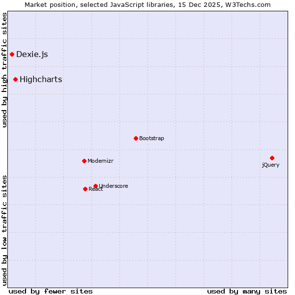 Historical trendThis diagram shows the historical trend in the percentage of websites using the selected technologies. Market positionThis diagram shows the market position of the selected technologies in terms of popularity and traffic compared to the most popular JavaScript libraries. More detailed statisticsYou can find extensive reports of JavaScript libraries in our JavaScript libraries market reports. Share this page | |||||||||||||||||||||||||||||||||||||||||||||||||||||||||||||||