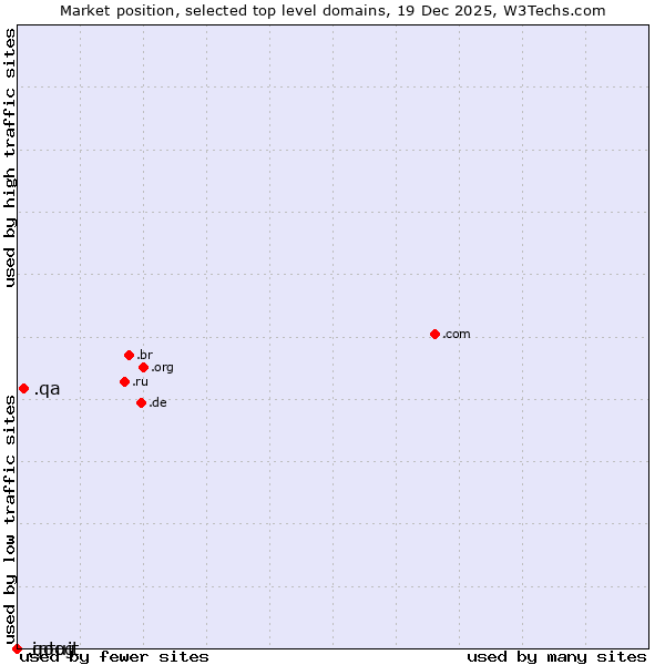 Historical trendThis diagram shows the historical trend in the percentage of websites using the selected technologies. Market positionThis diagram shows the market position of the selected technologies in terms of popularity and traffic compared to the most popular top level domains. More detailed statisticsYou can find extensive reports of top level domains in our top level domains market reports. Share this page | |||||||||||||||||||||||||||||||||||||||||||||||||||||||||||||||||||||||||||||||